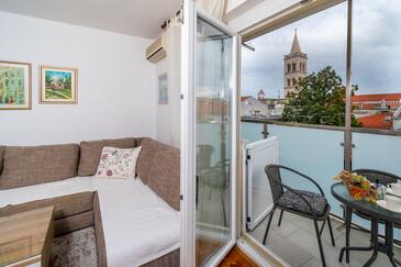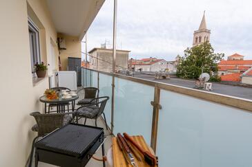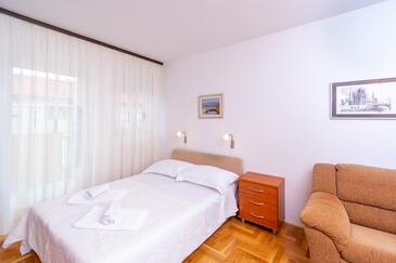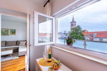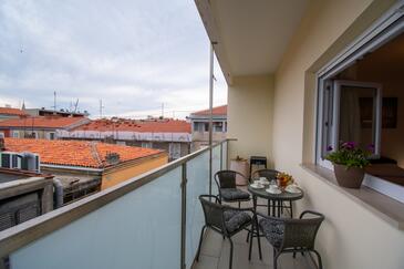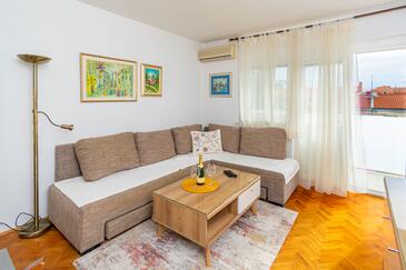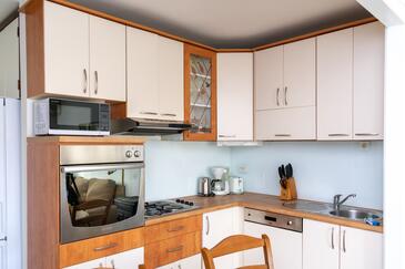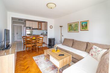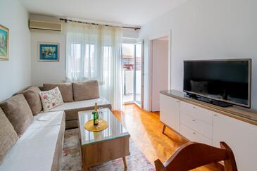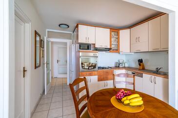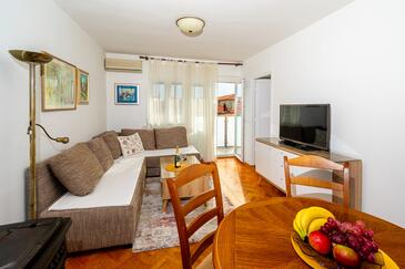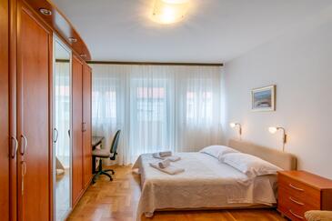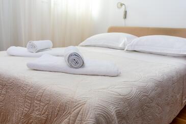 Ferienwohnung bietet Platz für 4 Gäste. Die Betten sind in Schlafzimmern, die es 2 gibt, innerhalb einer Gesamtfläche von 75m2, angeordnet. Die Gäste haben einen eigenen Balkon zur Verfügung, auf der sie in warmen Sommernächten genießen können. Das Apartment bietet Meerblick. Es ist erlaubt, Speisen auf dem Gemeinschafts-Grill vorzubereiten.