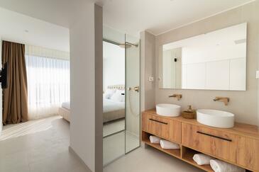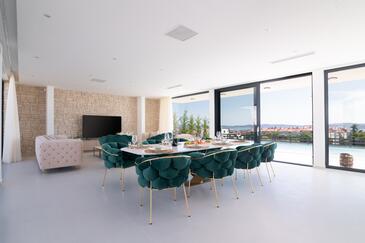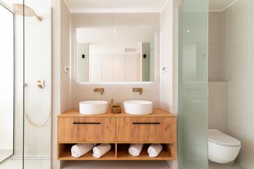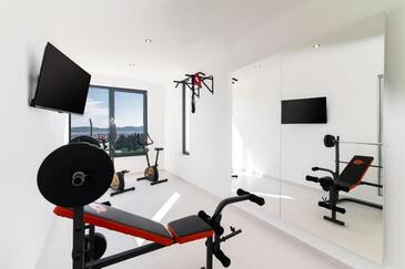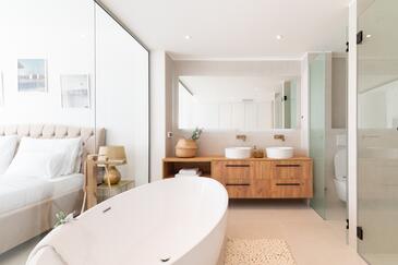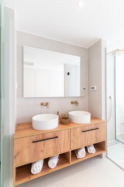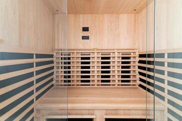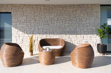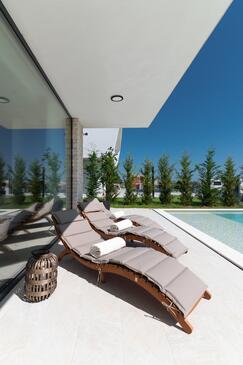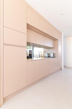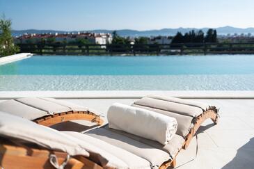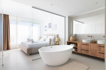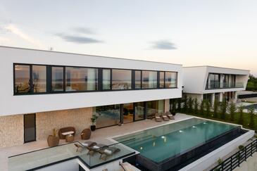 Haus bietet Platz für 8 Gäste. Die Betten sind in Schlafzimmern, die es 4 gibt, innerhalb einer Gesamtfläche von 256m2, angeordnet. Die Gäste haben eine eigene Terrasse zur Verfügung, auf der sie in warmen Sommernächten genießen können. Das Haus bietet Meerblick. Für vollen Genuss und Entspannung gibt es einen privaten Grill für Gäste dieser Unterkunft. Während ihres Aufenthalts können sich Gäste im privaten Schwimmbad entspannen. In der Unterkunftseinheit besteht die Möglichkeit des Mitbringens von Haustieren gegen Aufpreis.