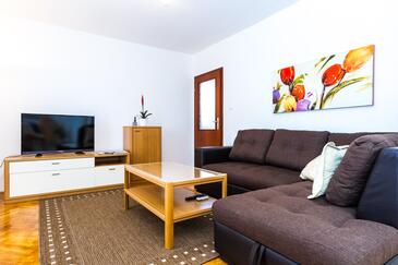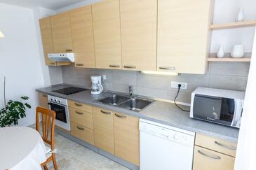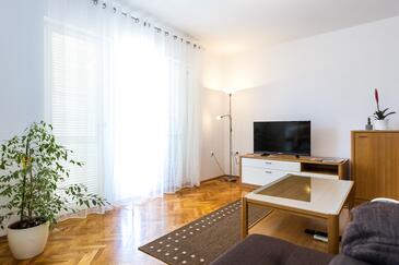 Ferienwohnung bietet Platz für 5 Gäste. Die Betten sind in Schlafzimmern, die es 2 gibt, und in Wohnzimmer, innerhalb einer Gesamtfläche von 67m2, angeordnet. Die Gäste haben einen eigenen Balkon zur Verfügung, auf der sie in warmen Sommernächten genießen können. Das Apartment bietet Meerblick. Es ist erlaubt, Speisen auf dem Gemeinschafts-Grill vorzubereiten.