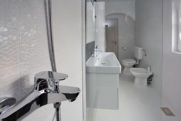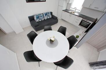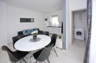 Ferienwohnung bietet Platz für 5 Gäste. Die Betten sind in Schlafzimmern, die es 2 gibt, und in Wohnzimmer, innerhalb einer Gesamtfläche von 55m2, angeordnet. Die Gäste haben eine eigene Terrasse zur Verfügung, auf der sie in warmen Sommernächten genießen können. Es ist erlaubt, Speisen auf dem Gemeinschafts-Grill vorzubereiten. In der Unterkunftseinheit besteht die Möglichkeit des Mitbringens von Haustieren, und die Dienstleistung ist im Preis der Unterkunft enthalten.
