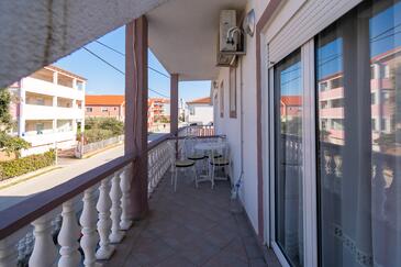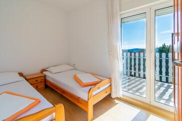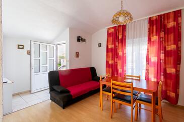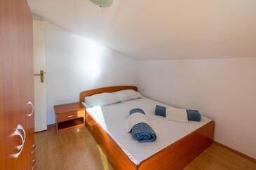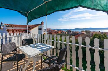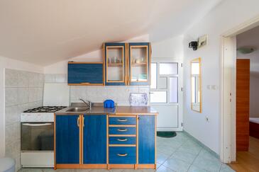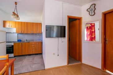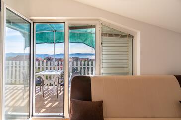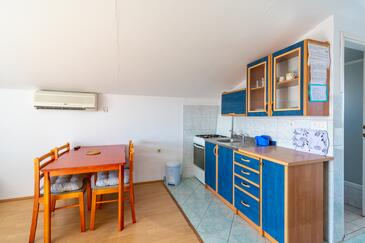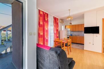 Ferienwohnung bietet Platz für 5 Gäste. Die Betten sind in Schlafzimmern, die es 2 gibt, und in Esszimmer, innerhalb einer Gesamtfläche von 38m2, angeordnet. Die Gäste haben eine eigene Terrasse zur Verfügung, auf der sie in warmen Sommernächten genießen können. Das Apartment bietet Meerblick. Es ist erlaubt, Speisen auf dem Gemeinschafts-Grill vorzubereiten.