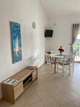 Ferienwohnung bietet Platz für 4 Gäste. Die Betten sind in Schlafzimmern, die es 1 gibt, und in Wohnzimmer, innerhalb einer Gesamtfläche von 52m2, angeordnet. Die Gäste haben eine eigene Terrasse zur Verfügung, auf der sie in warmen Sommernächten genießen können. Das Apartment bietet Meerblick. Es ist erlaubt, Speisen auf dem Gemeinschafts-Grill vorzubereiten.
