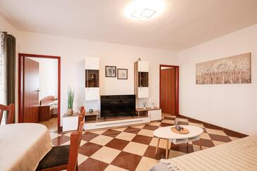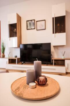 Ferienwohnung bietet Platz für 6 Gäste. Die Betten sind in Schlafzimmern, die es 2 gibt, und in Wohnzimmer, innerhalb einer Gesamtfläche von 47m2, angeordnet. Die Gäste haben eine eigene Terrasse zur Verfügung, auf der sie in warmen Sommernächten genießen können. Das Apartment bietet Meerblick. Es ist erlaubt, Speisen auf dem Gemeinschafts-Grill vorzubereiten. In der Unterkunftseinheit besteht die Möglichkeit des Mitbringens von Haustieren, und die Dienstleistung ist im Preis der Unterkunft enthalten.