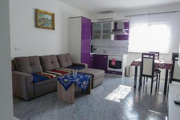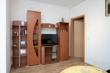 Ferienwohnung bietet Platz für 4 Gäste. Die Betten sind in Schlafzimmern, die es 1 gibt, und in Wohnzimmer, innerhalb einer Gesamtfläche von 34m2, angeordnet. Die Gäste haben eine eigene Terrasse zur Verfügung, auf der sie in warmen Sommernächten genießen können. Es ist erlaubt, Speisen auf dem Gemeinschafts-Grill vorzubereiten.