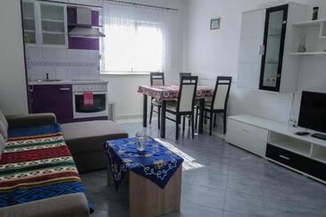 Ferienwohnung bietet Platz für 4 Gäste. Die Betten sind in Schlafzimmern, die es 1 gibt, und in Wohnzimmer, innerhalb einer Gesamtfläche von 34m2, angeordnet. Die Gäste haben eine eigene Terrasse zur Verfügung, auf der sie in warmen Sommernächten genießen können. Es ist erlaubt, Speisen auf dem Gemeinschafts-Grill vorzubereiten.