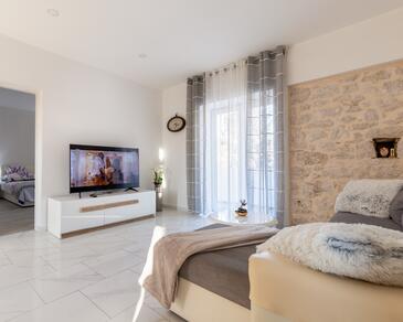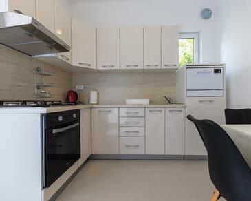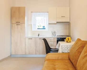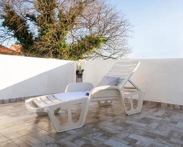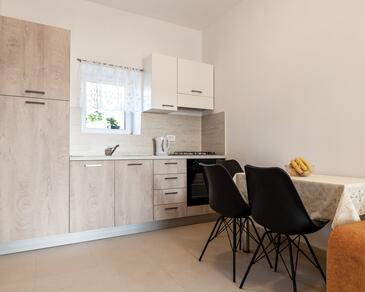 Ferienwohnung bietet Platz für 4 Gäste. Die Betten sind in Schlafzimmern, die es 2 gibt, innerhalb einer Gesamtfläche von 65m2, angeordnet. Die Gäste haben eine eigene Terrasse zur Verfügung, auf der sie in warmen Sommernächten genießen können.