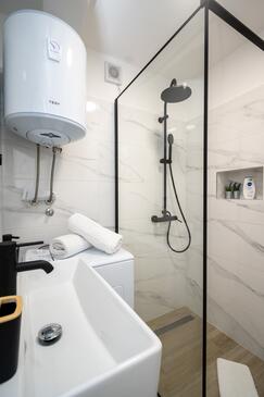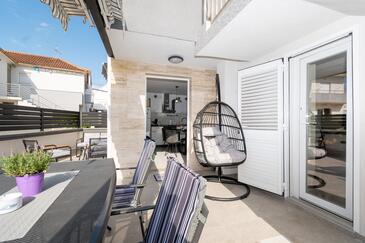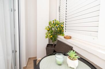 Ferienwohnung bietet Platz für 5 Gäste. Die Betten sind in Schlafzimmern, die es 2 gibt, innerhalb einer Gesamtfläche von 47m2, angeordnet. Die Gäste haben eine eigene Terrasse zur Verfügung, auf der sie in warmen Sommernächten genießen können. Das Apartment bietet Meerblick. Es ist erlaubt, Speisen auf dem Gemeinschafts-Grill vorzubereiten. In der Unterkunftseinheit besteht die Möglichkeit des Mitbringens von Haustieren gegen Aufpreis.