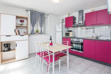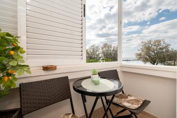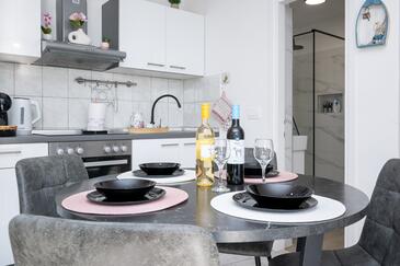 Ferienwohnung bietet Platz für 5 Gäste. Die Betten sind in Schlafzimmern, die es 2 gibt, innerhalb einer Gesamtfläche von 47m2, angeordnet. Die Gäste haben eine eigene Terrasse zur Verfügung, auf der sie in warmen Sommernächten genießen können. Das Apartment bietet Meerblick. Es ist erlaubt, Speisen auf dem Gemeinschafts-Grill vorzubereiten. In der Unterkunftseinheit besteht die Möglichkeit des Mitbringens von Haustieren gegen Aufpreis.
