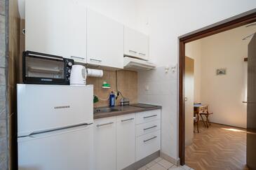 Ferienwohnung bietet Platz für 4 Gäste. Die Betten sind in Schlafzimmern, die es 1 gibt, und in Wohnzimmer, innerhalb einer Gesamtfläche von 42m2, angeordnet. Die Gäste haben eine eigene Terrasse zur Verfügung, auf der sie in warmen Sommernächten genießen können. Das Apartment bietet Meerblick. Es ist erlaubt, Speisen auf dem Gemeinschafts-Grill vorzubereiten.