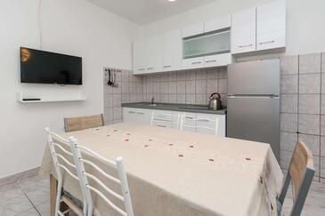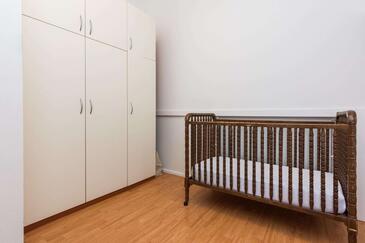 Ferienwohnung bietet Platz für 6 Gäste. Die Betten sind in Schlafzimmern, die es 3 gibt, innerhalb einer Gesamtfläche von 79m2, angeordnet. Die Gäste haben eine eigene Terrasse zur Verfügung, auf der sie in warmen Sommernächten genießen können. Es ist erlaubt, Speisen auf dem Gemeinschafts-Grill vorzubereiten.
