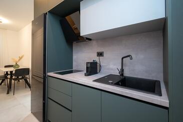 Ferienwohnung bietet Platz für 4 Gäste. Die Betten sind in Schlafzimmern, die es 2 gibt, innerhalb einer Gesamtfläche von 50m2, angeordnet. Die reservierte Unterkunftseinheit hat keinen Balkon und keine Terrasse.