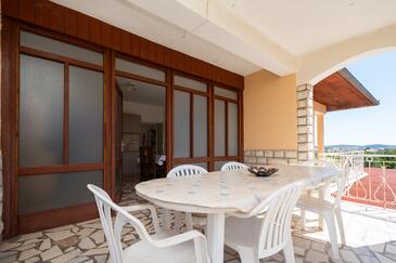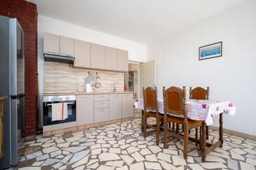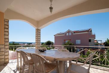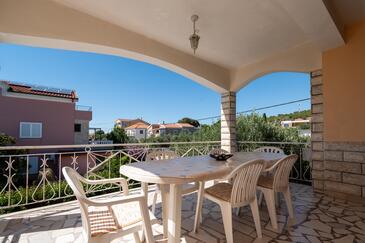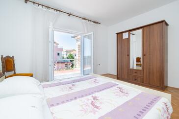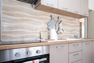 Ferienwohnung bietet Platz für 6 Gäste. Die Betten sind in Schlafzimmern, die es 3 gibt, innerhalb einer Gesamtfläche von 92m2, angeordnet. Die Gäste haben eine eigene Terrasse zur Verfügung, auf der sie in warmen Sommernächten genießen können. Das Apartment bietet Meerblick. Es ist erlaubt, Speisen auf dem Gemeinschafts-Grill vorzubereiten.