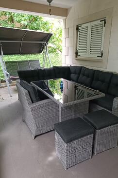 Ferienwohnung bietet Platz für 7 Gäste. Die Betten sind in Schlafzimmern, die es 3 gibt, und in Wohnzimmer, innerhalb einer Gesamtfläche von 78m2, angeordnet. Die Gäste haben eine eigene Terrasse zur Verfügung, auf der sie in warmen Sommernächten genießen können. Das Apartment bietet Meerblick. Für vollen Genuss und Entspannung gibt es einen privaten Grill für Gäste dieser Unterkunft.