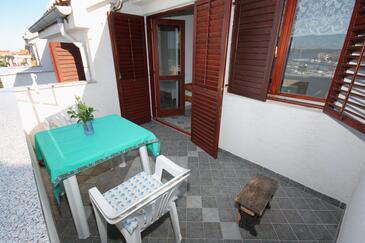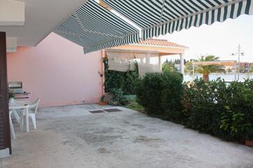 Studio bietet Platz für 5 Gäste. Die Betten sind in Schlafzimmern, die es 1 gibt, und in Wohnzimmer, innerhalb einer Gesamtfläche von 38m2, angeordnet. Die Gäste haben eine eigene Terrasse zur Verfügung, auf der sie in warmen Sommernächten genießen können. Das Studio-Apartment bietet Meerblick. Es ist erlaubt, Speisen auf dem Gemeinschafts-Grill vorzubereiten.