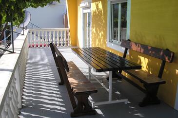 Ferienwohnung bietet Platz für 6 Gäste. Die Betten sind in Schlafzimmern, die es 3 gibt, innerhalb einer Gesamtfläche von 84m2, angeordnet. Die Gäste haben eine eigene Terrasse zur Verfügung, auf der sie in warmen Sommernächten genießen können. Es ist erlaubt, Speisen auf dem Gemeinschafts-Grill vorzubereiten. In der Unterkunftseinheit besteht die Möglichkeit des Mitbringens von Haustieren gegen Aufpreis.