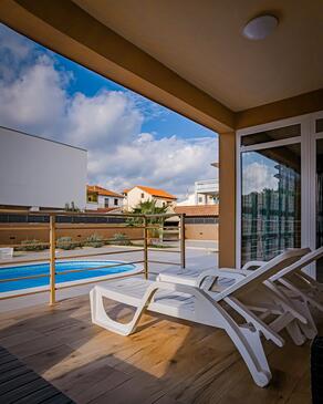 Ferienwohnung bietet Platz für 4 Gäste. Die Betten sind in Schlafzimmern, die es 2 gibt, innerhalb einer Gesamtfläche von 55m2, angeordnet. Die Gäste haben eine eigene Terrasse zur Verfügung, auf der sie in warmen Sommernächten genießen können. Es ist erlaubt, Speisen auf dem Gemeinschafts-Grill vorzubereiten. Während ihres Aufenthalts können Gäste das gemeinsam zur Nutzung stehende Schwimmbad benutzen.