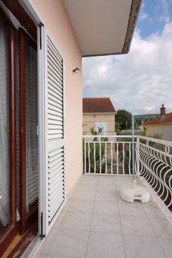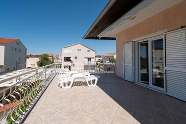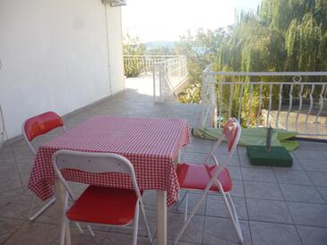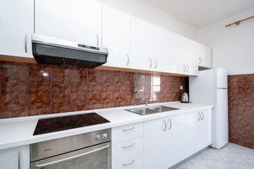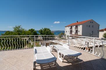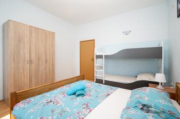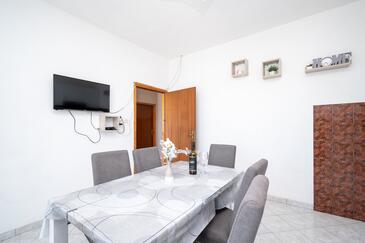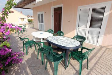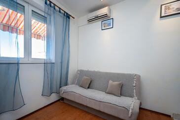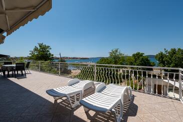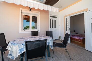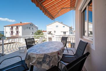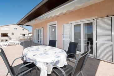 Ferienwohnung bietet Platz für 6 Gäste. Die Betten sind in Schlafzimmern, die es 2 gibt, innerhalb einer Gesamtfläche von 57m2, angeordnet. Die Gäste haben eine eigene Terrasse zur Verfügung, auf der sie in warmen Sommernächten genießen können. Das Apartment bietet Meerblick. Es ist erlaubt, Speisen auf dem Gemeinschafts-Grill vorzubereiten.