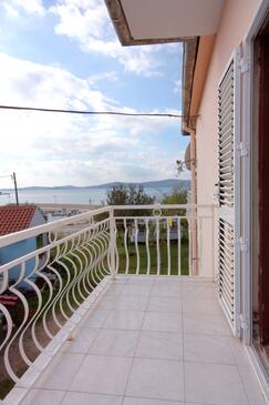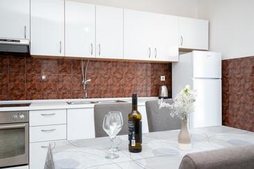 Ferienwohnung bietet Platz für 6 Gäste. Die Betten sind in Schlafzimmern, die es 2 gibt, innerhalb einer Gesamtfläche von 57m2, angeordnet. Die Gäste haben eine eigene Terrasse zur Verfügung, auf der sie in warmen Sommernächten genießen können. Das Apartment bietet Meerblick. Es ist erlaubt, Speisen auf dem Gemeinschafts-Grill vorzubereiten.