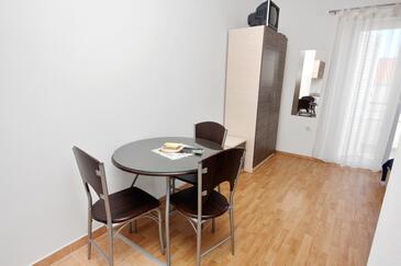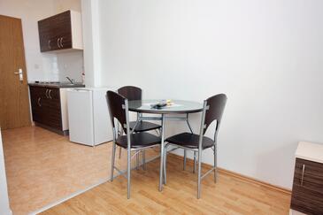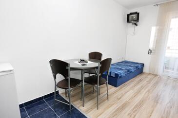 Ferienwohnung bietet Platz für 4 Gäste. Die Betten sind in Schlafzimmern, die es 1 gibt, und in Wohnzimmer, innerhalb einer Gesamtfläche von 34m2, angeordnet. Die Gäste haben einen eigenen Balkon zur Verfügung, auf der sie in warmen Sommernächten genießen können. Das Apartment bietet Meerblick. Es ist erlaubt, Speisen auf dem Gemeinschafts-Grill vorzubereiten. In der Unterkunftseinheit besteht die Möglichkeit des Mitbringens von Haustieren, und die Dienstleistung ist im Preis der Unterkunft enthalten.