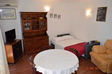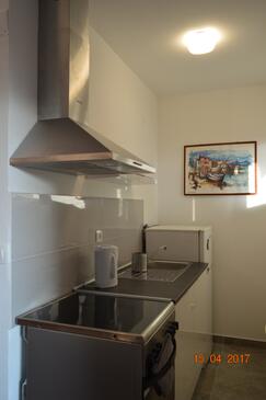 Ferienwohnung bietet Platz für 4 Gäste. Die Betten sind in Schlafzimmern, die es 1 gibt, und in Wohnzimmer, innerhalb einer Gesamtfläche von 40m2, angeordnet. Die Gäste haben eine eigene Terrasse zur Verfügung, auf der sie in warmen Sommernächten genießen können. Das Apartment bietet Meerblick. Es ist erlaubt, Speisen auf dem Gemeinschafts-Grill vorzubereiten.
