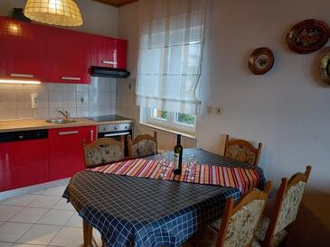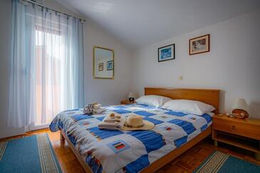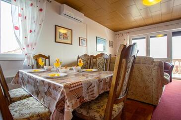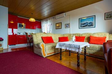 Ferienwohnung bietet Platz für 5 Gäste. Die Betten sind in Schlafzimmern, die es 2 gibt, und in Wohnzimmer, innerhalb einer Gesamtfläche von 54m2, angeordnet. Die Gäste haben eine eigene Terrasse zur Verfügung, auf der sie in warmen Sommernächten genießen können. Das Apartment bietet Meerblick. Es ist erlaubt, Speisen auf dem Gemeinschafts-Grill vorzubereiten.