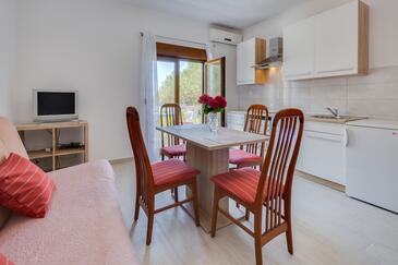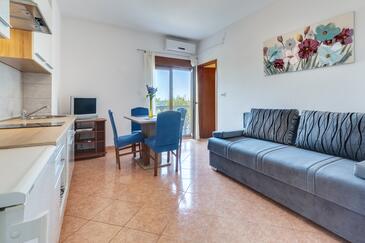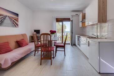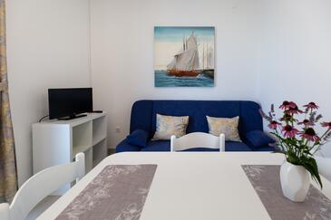 Ferienwohnung bietet Platz für 3 Gäste. Die Betten sind in Schlafzimmern, die es 1 gibt, und in Wohnzimmer, innerhalb einer Gesamtfläche von 33m2, angeordnet. Die Gäste haben einen eigenen Balkon zur Verfügung, auf der sie in warmen Sommernächten genießen können. Das Apartment bietet Meerblick. Es ist erlaubt, Speisen auf dem Gemeinschafts-Grill vorzubereiten. In der Unterkunftseinheit besteht die Möglichkeit des Mitbringens von Haustieren gegen Aufpreis.