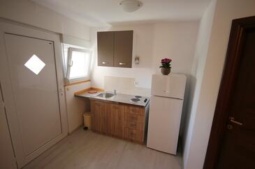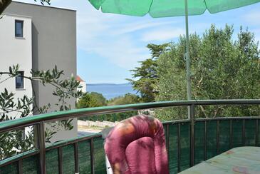 Ferienwohnung bietet Platz für 2 Gäste. Die Betten sind in Schlafzimmern, die es 1 gibt, innerhalb einer Gesamtfläche von 33m2, angeordnet. Die Gäste haben eine eigene Terrasse zur Verfügung, auf der sie in warmen Sommernächten genießen können. Das Apartment bietet Meerblick. Es ist erlaubt, Speisen auf dem Gemeinschafts-Grill vorzubereiten.