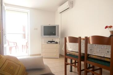 Ferienwohnung bietet Platz für 5 Gäste. Die Betten sind in Schlafzimmern, die es 1 gibt, und in Wohnzimmer, innerhalb einer Gesamtfläche von 41m2, angeordnet. Die Gäste haben eine eigene Terrasse zur Verfügung, auf der sie in warmen Sommernächten genießen können. Es ist erlaubt, Speisen auf dem Gemeinschafts-Grill vorzubereiten. In der Unterkunftseinheit besteht die Möglichkeit des Mitbringens von Haustieren gegen Aufpreis.