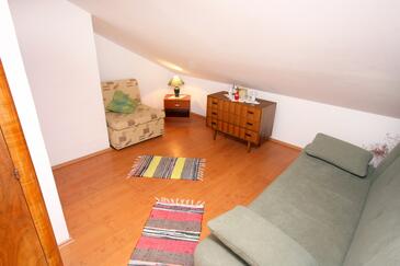 Ferienwohnung bietet Platz für 5 Gäste. Die Betten sind in Schlafzimmern, die es 1 gibt, und in Wohnzimmer, innerhalb einer Gesamtfläche von 41m2, angeordnet. Die Gäste haben eine eigene Terrasse zur Verfügung, auf der sie in warmen Sommernächten genießen können. Es ist erlaubt, Speisen auf dem Gemeinschafts-Grill vorzubereiten. In der Unterkunftseinheit besteht die Möglichkeit des Mitbringens von Haustieren gegen Aufpreis.