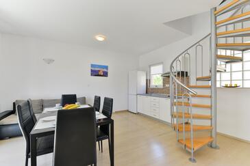 Ferienwohnung bietet Platz für 5 Gäste. Die Betten sind in Schlafzimmern, die es 2 gibt, und in Esszimmer, innerhalb einer Gesamtfläche von 57m2, angeordnet. Die Gäste haben einen eigenen Balkon zur Verfügung, auf der sie in warmen Sommernächten genießen können. Das Apartment bietet Meerblick. Es ist erlaubt, Speisen auf dem Gemeinschafts-Grill vorzubereiten. In der Unterkunftseinheit besteht die Möglichkeit des Mitbringens von Haustieren gegen Aufpreis.