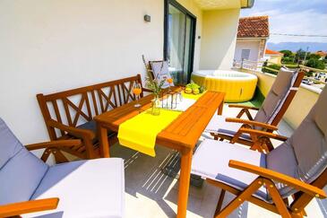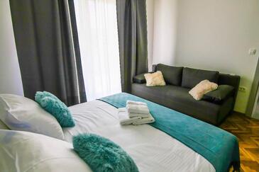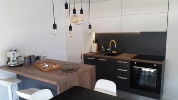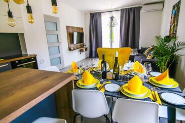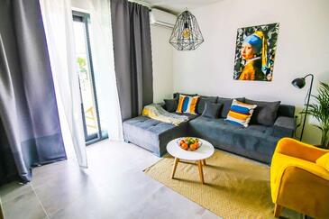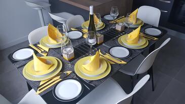 Ferienwohnung bietet Platz für 6 Gäste. Die Betten sind in Schlafzimmern, die es 2 gibt, innerhalb einer Gesamtfläche von 78m2, angeordnet. Die Gäste haben eine eigene Terrasse zur Verfügung, auf der sie in warmen Sommernächten genießen können. Das Apartment bietet Meerblick. Für vollen Genuss und Entspannung gibt es einen privaten Grill für Gäste dieser Unterkunft.
