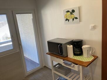 Ferienwohnung bietet Platz für 5 Gäste. Die Betten sind in Schlafzimmern, die es 2 gibt, und in Wohnzimmer, innerhalb einer Gesamtfläche von 59m2, angeordnet. Die Gäste haben einen eigenen Balkon zur Verfügung, auf der sie in warmen Sommernächten genießen können. Es ist erlaubt, Speisen auf dem Gemeinschafts-Grill vorzubereiten.