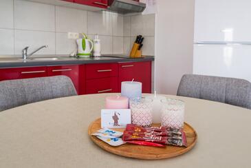 Ferienwohnung bietet Platz für 4 Gäste. Die Betten sind in Schlafzimmern, die es 2 gibt, innerhalb einer Gesamtfläche von 43m2, angeordnet. Die Gäste haben eine eigene Terrasse zur Verfügung, auf der sie in warmen Sommernächten genießen können. Es ist erlaubt, Speisen auf dem Gemeinschafts-Grill vorzubereiten.