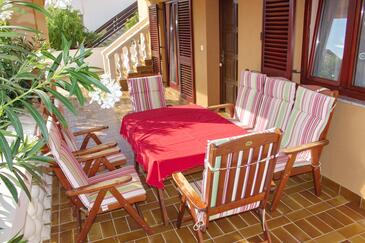 Ferienwohnung bietet Platz für 5 Gäste. Die Betten sind in Schlafzimmern, die es 2 gibt, und in Wohnzimmer, innerhalb einer Gesamtfläche von 45m2, angeordnet. Die Gäste haben eine eigene Terrasse zur Verfügung, auf der sie in warmen Sommernächten genießen können. Es ist erlaubt, Speisen auf dem Gemeinschafts-Grill vorzubereiten.