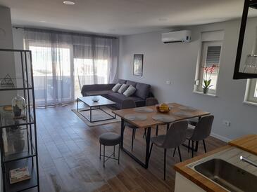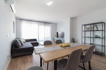 Ferienwohnung bietet Platz für 5 Gäste. Die Betten sind in Schlafzimmern, die es 2 gibt, und in Wohnzimmer, innerhalb einer Gesamtfläche von 64m2, angeordnet. Die Gäste haben einen eigenen Balkon zur Verfügung, auf der sie in warmen Sommernächten genießen können. Das Apartment bietet Meerblick. Es ist erlaubt, Speisen auf dem Gemeinschafts-Grill vorzubereiten.