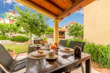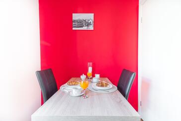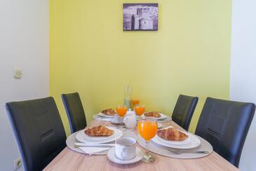 Ferienwohnung bietet Platz für 4 Gäste. Die Betten sind in Schlafzimmern, die es 2 gibt, innerhalb einer Gesamtfläche von 42m2, angeordnet. Die Gäste haben eine eigene Terrasse zur Verfügung, auf der sie in warmen Sommernächten genießen können. Es ist erlaubt, Speisen auf dem Gemeinschafts-Grill vorzubereiten.