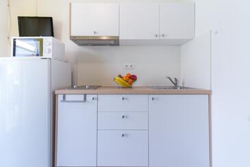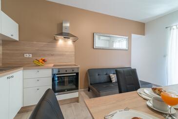 Ferienwohnung bietet Platz für 4 Gäste. Die Betten sind in Schlafzimmern, die es 2 gibt, innerhalb einer Gesamtfläche von 42m2, angeordnet. Die Gäste haben eine eigene Terrasse zur Verfügung, auf der sie in warmen Sommernächten genießen können. Es ist erlaubt, Speisen auf dem Gemeinschafts-Grill vorzubereiten.