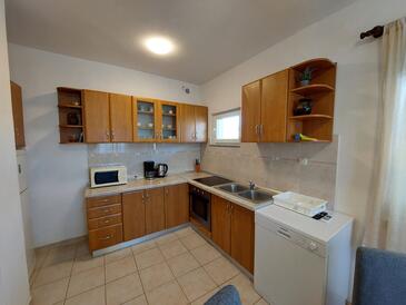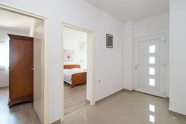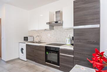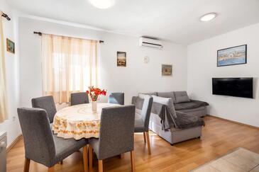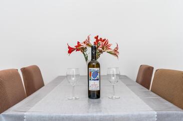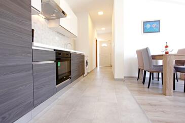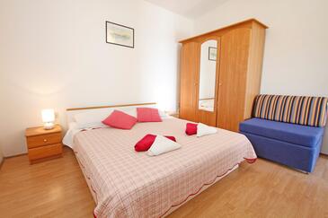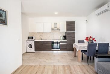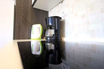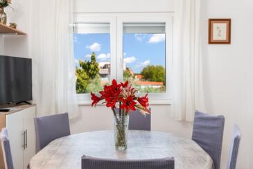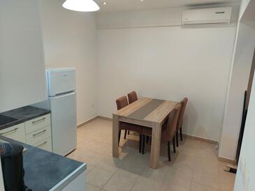 Ferienwohnung bietet Platz für 5 Gäste. Die Betten sind in Schlafzimmern, die es 2 gibt, und in Wohnzimmer, innerhalb einer Gesamtfläche von 64m2, angeordnet. Die Gäste haben eine eigene Terrasse zur Verfügung, auf der sie in warmen Sommernächten genießen können. Es ist erlaubt, Speisen auf dem Gemeinschafts-Grill vorzubereiten. In der Unterkunftseinheit besteht die Möglichkeit des Mitbringens von Haustieren gegen Aufpreis.
