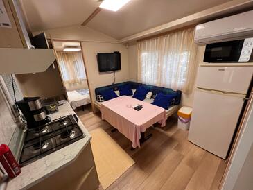 Ferienwohnung bietet Platz für 6 Gäste. Die Betten sind in Schlafzimmern, die es 1 gibt, und in Wohnzimmer, innerhalb einer Gesamtfläche von 68m2, angeordnet. Die Gäste haben einen eigenen Balkon zur Verfügung, auf der sie in warmen Sommernächten genießen können. Es ist erlaubt, Speisen auf dem Gemeinschafts-Grill vorzubereiten. In der Unterkunftseinheit besteht die Möglichkeit des Mitbringens von Haustieren gegen Aufpreis.