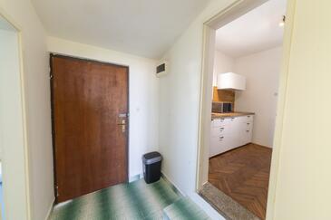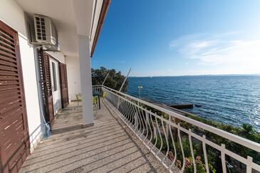 Ferienwohnung bietet Platz für 5 Gäste. Die Betten sind in Schlafzimmern, die es 2 gibt, und in Wohnzimmer, innerhalb einer Gesamtfläche von 42m2, angeordnet. Die Gäste haben eine eigene Terrasse zur Verfügung, auf der sie in warmen Sommernächten genießen können. Das Apartment bietet Meerblick. Es ist erlaubt, Speisen auf dem Gemeinschafts-Grill vorzubereiten.