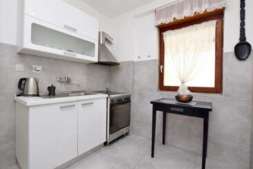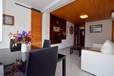 Ferienwohnung bietet Platz für 5 Gäste. Die Betten sind in Schlafzimmern, die es 2 gibt, und in Wohnzimmer, innerhalb einer Gesamtfläche von 60m2, angeordnet. Die Gäste haben eine eigene Terrasse zur Verfügung, auf der sie in warmen Sommernächten genießen können. Das Apartment bietet Meerblick. Es ist erlaubt, Speisen auf dem Gemeinschafts-Grill vorzubereiten.