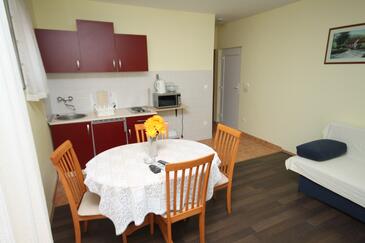 Ferienwohnung bietet Platz für 4 Gäste. Die Betten sind in Schlafzimmern, die es 1 gibt, und in Wohnzimmer, innerhalb einer Gesamtfläche von 33m2, angeordnet. Die Gäste haben einen eigenen Balkon zur Verfügung, auf der sie in warmen Sommernächten genießen können. Das Apartment bietet Meerblick. Es ist erlaubt, Speisen auf dem Gemeinschafts-Grill vorzubereiten. In der Unterkunftseinheit besteht die Möglichkeit des Mitbringens von Haustieren gegen Aufpreis.