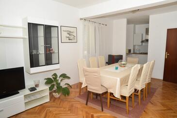 Ferienwohnung bietet Platz für 8 Gäste. Die Betten sind in Schlafzimmern, die es 3 gibt, und in Wohnzimmer, innerhalb einer Gesamtfläche von 102m2, angeordnet. Die Gäste haben eine eigene Terrasse zur Verfügung, auf der sie in warmen Sommernächten genießen können. Für vollen Genuss und Entspannung gibt es einen privaten Grill für Gäste dieser Unterkunft. Während ihres Aufenthalts können Gäste das gemeinsam zur Nutzung stehende Schwimmbad benutzen.