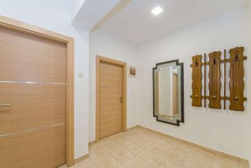 Ferienwohnung bietet Platz für 10 Gäste. Die Betten sind in Schlafzimmern, die es 4 gibt, innerhalb einer Gesamtfläche von 102m2, angeordnet. Die Gäste haben eine eigene Terrasse zur Verfügung, auf der sie in warmen Sommernächten genießen können. Es ist erlaubt, Speisen auf dem Gemeinschafts-Grill vorzubereiten.