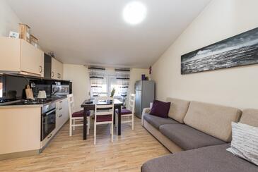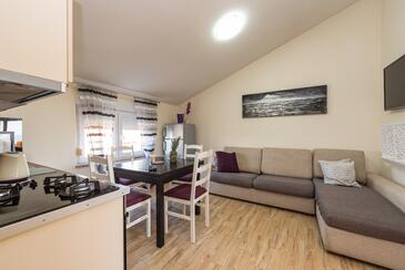 Ferienwohnung bietet Platz für 6 Gäste. Die Betten sind in Schlafzimmern, die es 3 gibt, innerhalb einer Gesamtfläche von 106m2, angeordnet. Die Gäste haben eine eigene Terrasse zur Verfügung, auf der sie in warmen Sommernächten genießen können. Das Apartment bietet Meerblick. Für vollen Genuss und Entspannung gibt es einen privaten Grill für Gäste dieser Unterkunft.