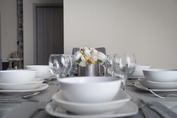 Haus bietet Platz für 6 Gäste. Die Betten sind in Schlafzimmern, die es 3 gibt, innerhalb einer Gesamtfläche von 90m2, angeordnet. Die Gäste haben eine eigene Terrasse zur Verfügung, auf der sie in warmen Sommernächten genießen können. Für vollen Genuss und Entspannung gibt es einen privaten Grill für Gäste dieser Unterkunft. Während ihres Aufenthalts können sich Gäste im privaten Schwimmbad entspannen. In der gebuchten Unterkunftseinheit zahlt man am Ort ein Depositum ( der Preis ist an der Internetseite angeführt ).