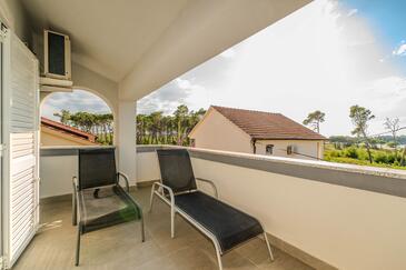 Ferienwohnung bietet Platz für 4 Gäste. Die Betten sind in Schlafzimmern, die es 2 gibt, innerhalb einer Gesamtfläche von 58m2, angeordnet. Die Gäste haben eine eigene Terrasse zur Verfügung, auf der sie in warmen Sommernächten genießen können. Das Apartment bietet Meerblick. Es ist erlaubt, Speisen auf dem Gemeinschafts-Grill vorzubereiten.