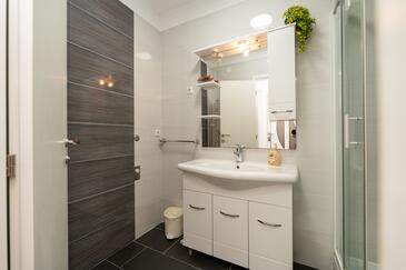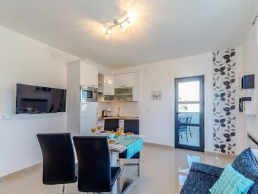 Ferienwohnung bietet Platz für 4 Gäste. Die Betten sind in Schlafzimmern, die es 2 gibt, innerhalb einer Gesamtfläche von 58m2, angeordnet. Die Gäste haben eine eigene Terrasse zur Verfügung, auf der sie in warmen Sommernächten genießen können. Das Apartment bietet Meerblick. Es ist erlaubt, Speisen auf dem Gemeinschafts-Grill vorzubereiten.