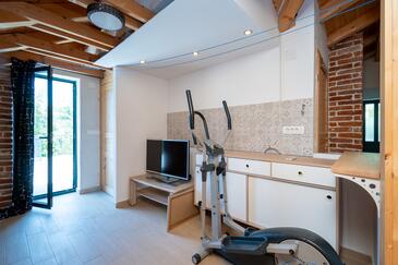 Haus bietet Platz für 8 Gäste. Die Betten sind in Schlafzimmern, die es 3 gibt, und in Wohnzimmer, innerhalb einer Gesamtfläche von 123m2, angeordnet. Die Gäste haben eine eigene Terrasse zur Verfügung, auf der sie in warmen Sommernächten genießen können. Für vollen Genuss und Entspannung gibt es einen privaten Grill für Gäste dieser Unterkunft. Während ihres Aufenthalts können sich Gäste im privaten Schwimmbad entspannen.