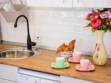 Ferienwohnung bietet Platz für 4 Gäste. Die Betten sind in Schlafzimmern, die es 2 gibt, innerhalb einer Gesamtfläche von 59m2, angeordnet. Die Gäste haben eine eigene Terrasse zur Verfügung, auf der sie in warmen Sommernächten genießen können. Das Apartment bietet Meerblick. Es ist erlaubt, Speisen auf dem Gemeinschafts-Grill vorzubereiten. Während ihres Aufenthalts können Gäste das gemeinsam zur Nutzung stehende Schwimmbad benutzen. In der Unterkunftseinheit besteht die Möglichkeit des Mitbringens von Haustieren, und die Dienstleistung ist im Preis der Unterkunft enthalten.
